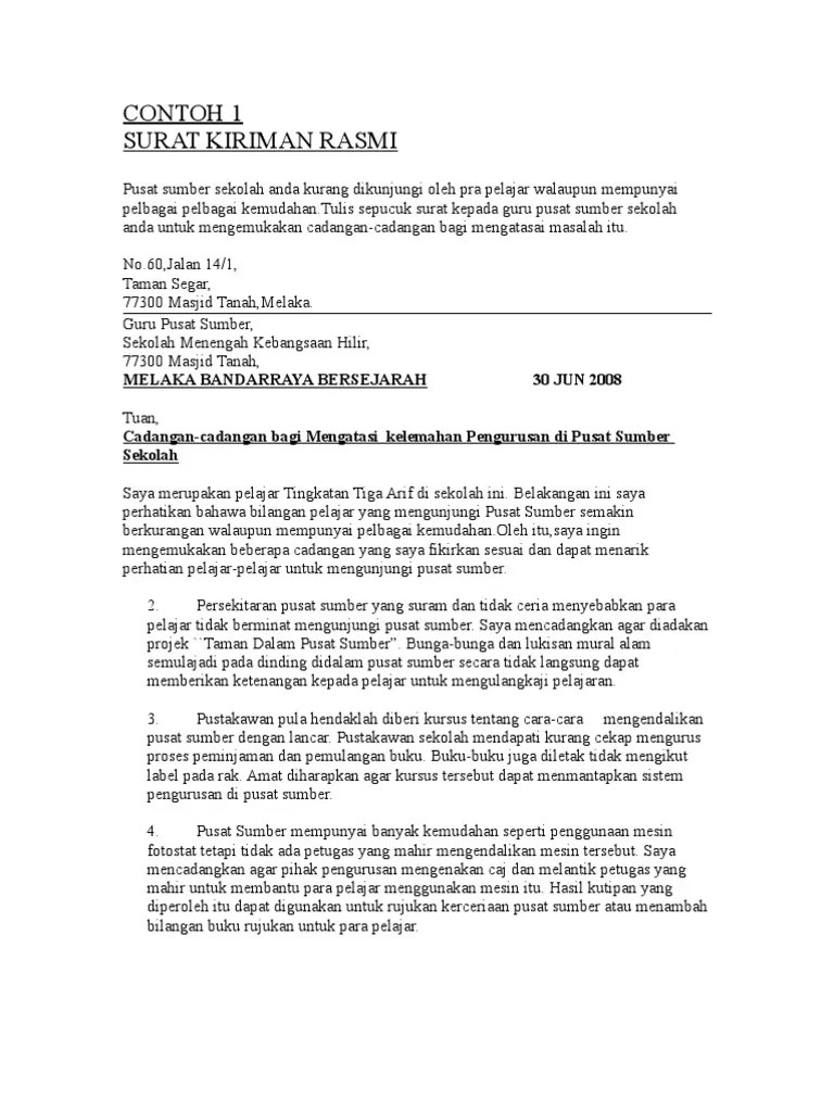70 lorong a13 taman maju jaya 75324 seremban negeri sembilan. Contoh surat rasmi permohonan pemulangan wang surasmi r. Tujuan penulisan surat kiriman rasmi adalah.
